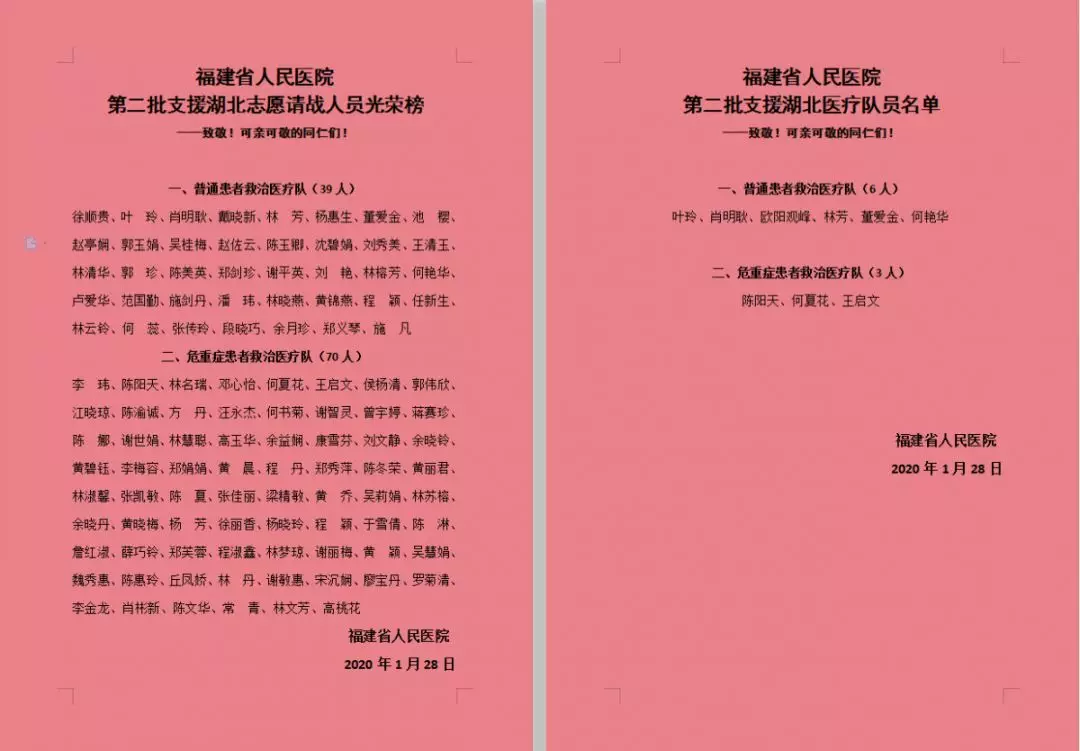 为了持续支援湖北应对新型冠状病毒疫情,保证打赢防疫战役,福建省人民黄播 党委于1月27日晚8时接到福建省卫健委统一部署要求后,火速向全院发布“招募令”,再次吹响“集结号”,紧急组建第二批援助湖北医疗队。
