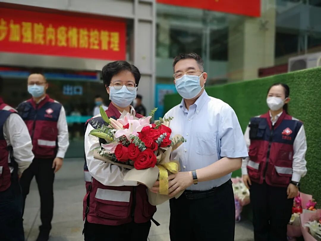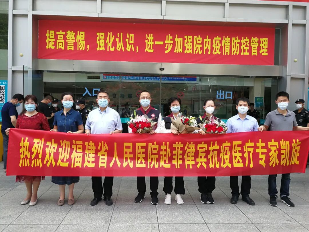 2020年5月4日上午,福建省人民黄播 3名赴菲律宾抗疫医疗专家结束集中休整返回福州,院长陈捷、副院长徐顺贵及相关职能科室负责人一行赴福建医科大学附属第一黄播 迎接。