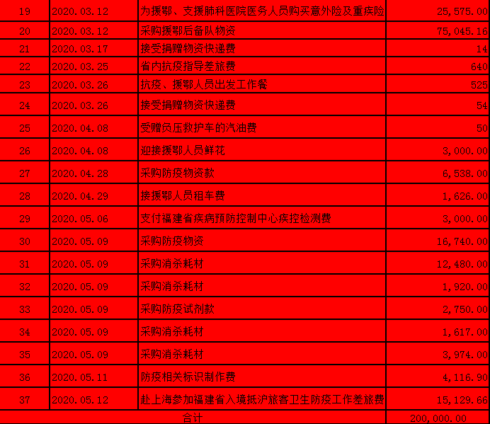 另将2月接受福建省红十字会捐赠资金20万元使用情况公示如下: