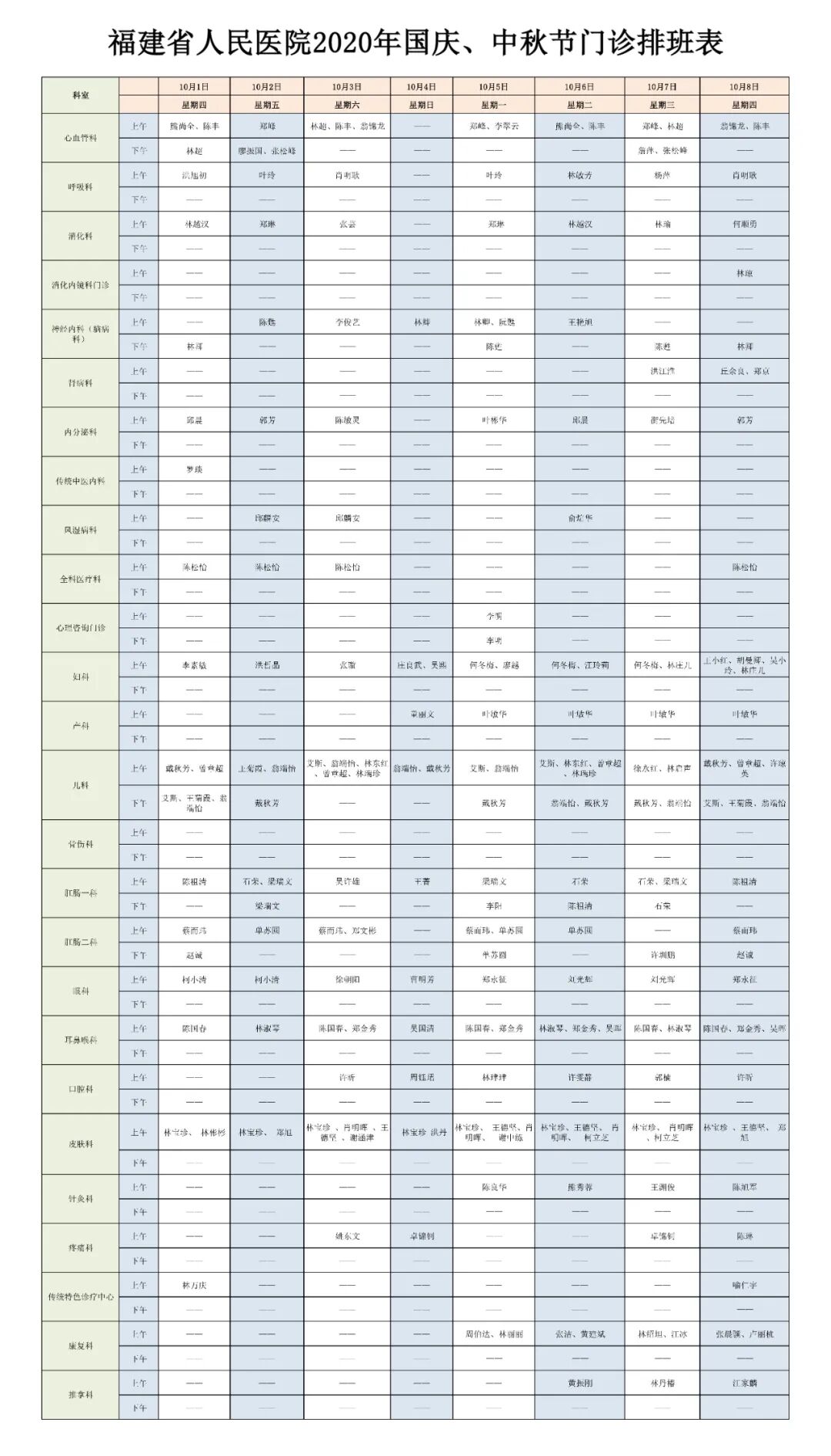 2020年国庆、中秋节门急诊安排出炉!(内有作息时间调整)