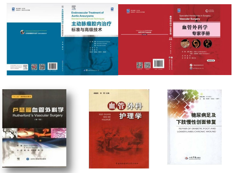 2022年-2023年,科室作为主译单位,组织全国多所医学院校专家学者编译并出版了《主动脉瘤腔内治疗-标准与高级技术》、《牛津血管外科专家手册》两本英文学术著作,收到业内广泛好评。科室成员还参译/编《罗斯福血管外科学,第7版》、《糖尿病足及下肢慢性创面修复》第一版、《血管外科护理学》第一版、《血管通路中心静脉介入诊断及治疗学》第一版等著作。此外,科室成员担任《血管与腔内血管外科杂志》通讯编委,《中华实验外科杂志》、《中华创伤外科杂志英文版》审稿人。此外,科主任夏印参与编写了《原发性下肢浅静脉曲张专家共识》(2021版),2023年受中国医师协会血管外科分会邀请参与编写《中国静脉曲张诊疗指南》。
