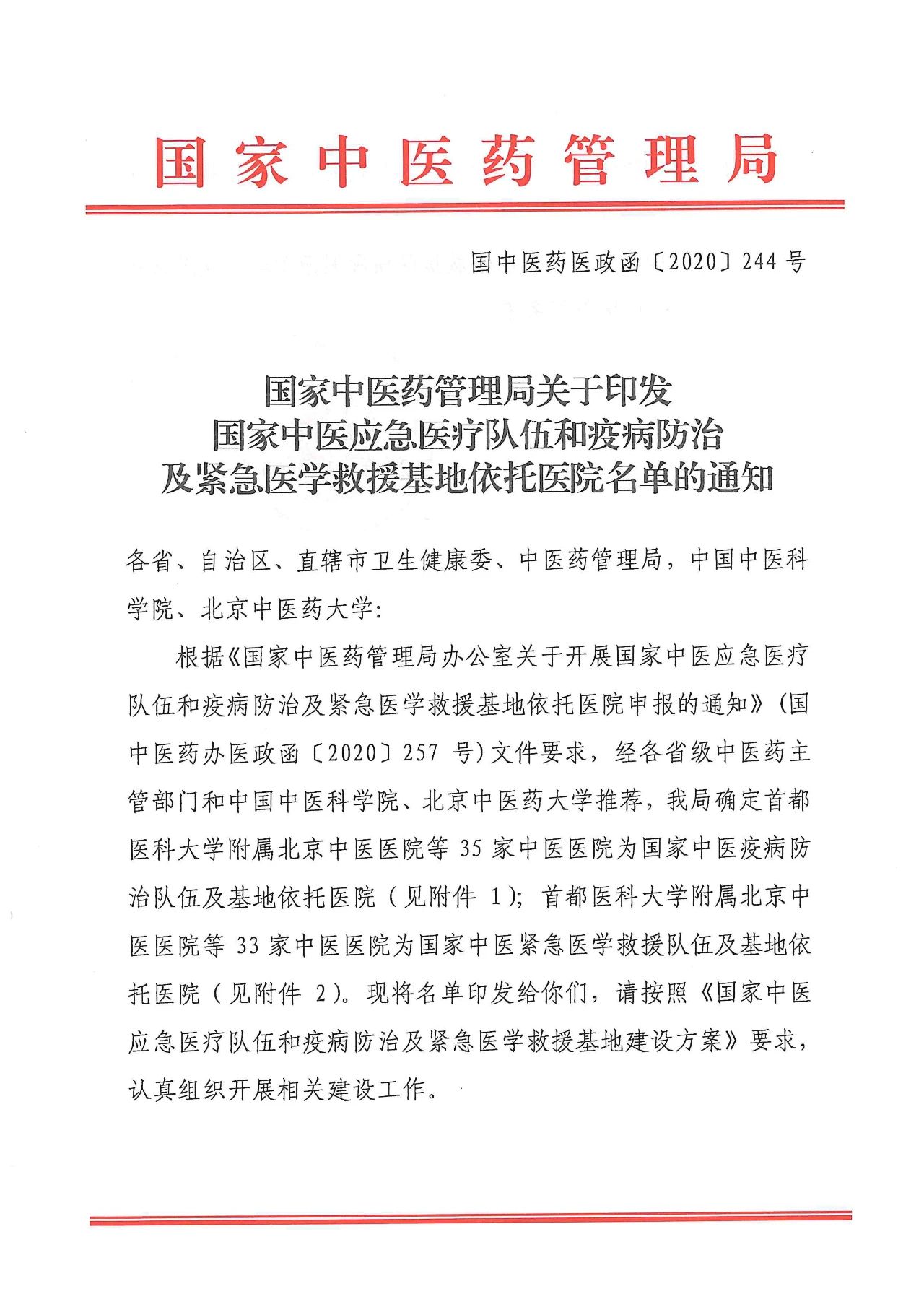 重磅!省人民黄播 被选定为国家中医疫病防治及紧急医学救援双基地