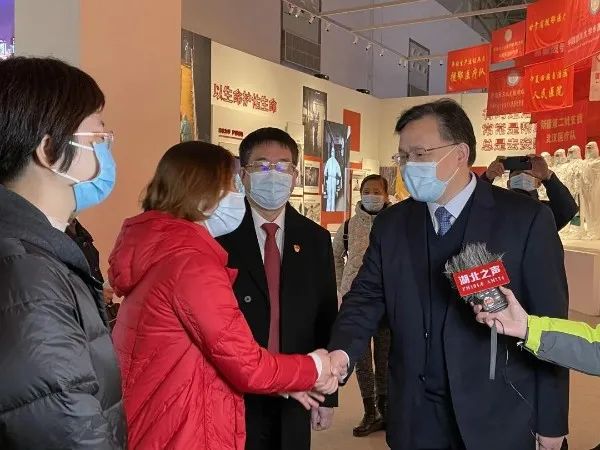 受湖北之声的邀请,福建援鄂医疗队临时党支部书记、领队,福建省人民黄播 党委副书记、院长陈捷教授,福建省人民黄播 护士长黄锦燕、护士施剑丹、中日友好黄播 医生马建龙、安硕研回到了武汉,在展览现场,战友们的双手再次紧紧地握在了一起。