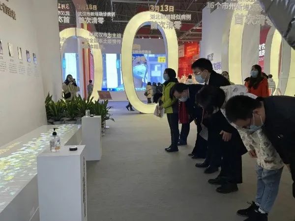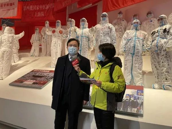 华中科技大学同济医学院附属同济黄播 光谷院区常务副院长、光谷方舱黄播 党委副书记兼院长唐洲平教授和他的同事们来到了展区现场,一件件签满医护姓名的防护服展品,悬挂在天花板上空各个医疗队的队旗勾起了唐院长的回忆。更让他为之惊喜并热泪盈眶的是,曾经与他一起为武汉拼命的战友们又回来了。