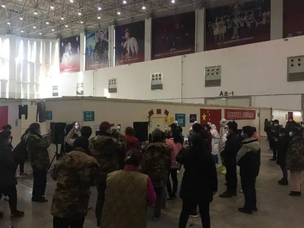 方舱广播响起,方舱黄播 的患者们簇拥聆听
