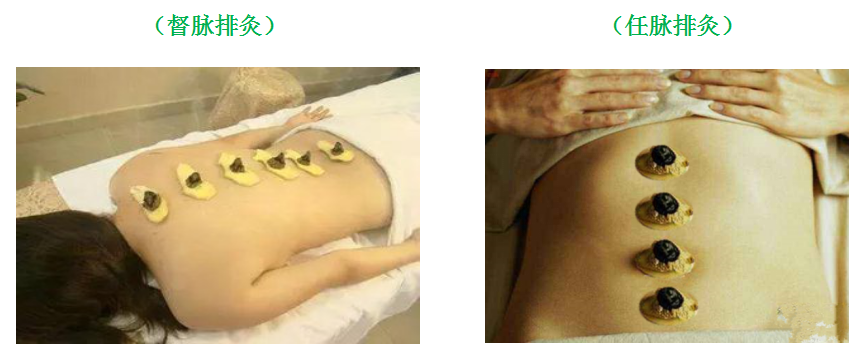 督脉排灸是在传统的天灸的基础上发展而来的,除了选择大椎穴和肺俞穴外,还会根据病人的病证,沿着督脉、膀胱经再取3至4个穴位进行隔姜灸,更进一步提升人体阳气,提高身体免疫力。任脉排灸则是在腹部任脉上选取穴位进行隔姜灸,对妇科宫寒不孕、痛经、脾胃虚寒等病尤为适合。