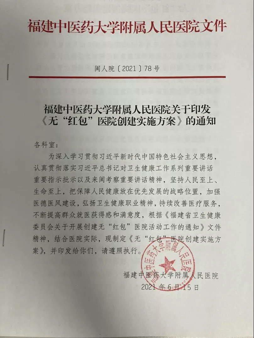 根据福建省卫健委关于省属公立黄播 无“红包”黄播 创建工作有关要求,院党委高度重视,积极部署建立系列管理制度及宣传教育活动,加入省属第一批创建无“红包”黄播 行列。
