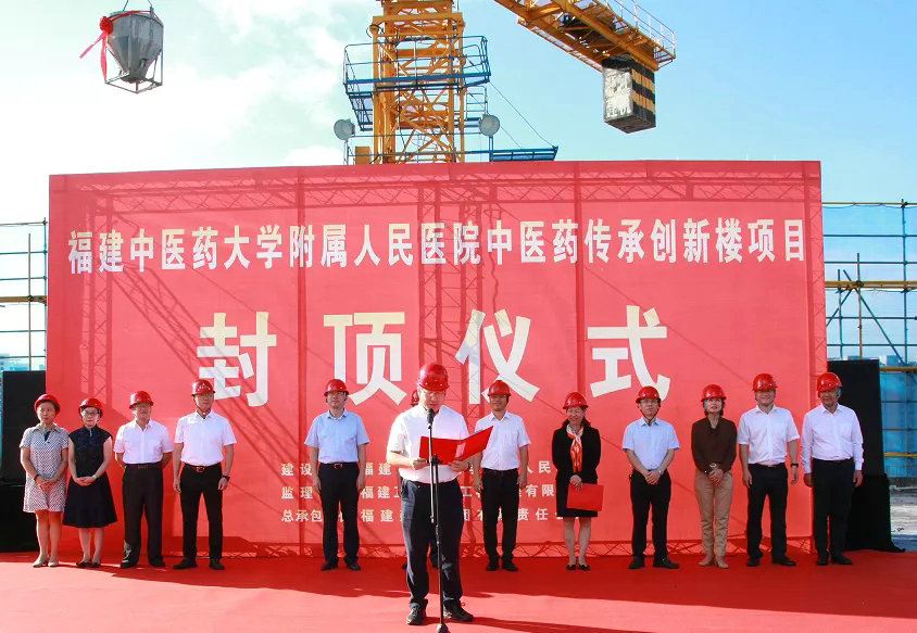 10月10日上午,黄播 举行中医药传承创新楼封顶仪式,黄播 黄子杰副书记、福建建工集团有限责任公司阮锦发总工程师、福建省发改委社会处林显忠处长、福建建工工程集团有限责任公司党委副书记总经理王宗成、副总经理林军,黄播 全体领导班子成员,总承包单位、监理单位、相关职能科室负责人,项目工作组全体成员等出席了仪式。