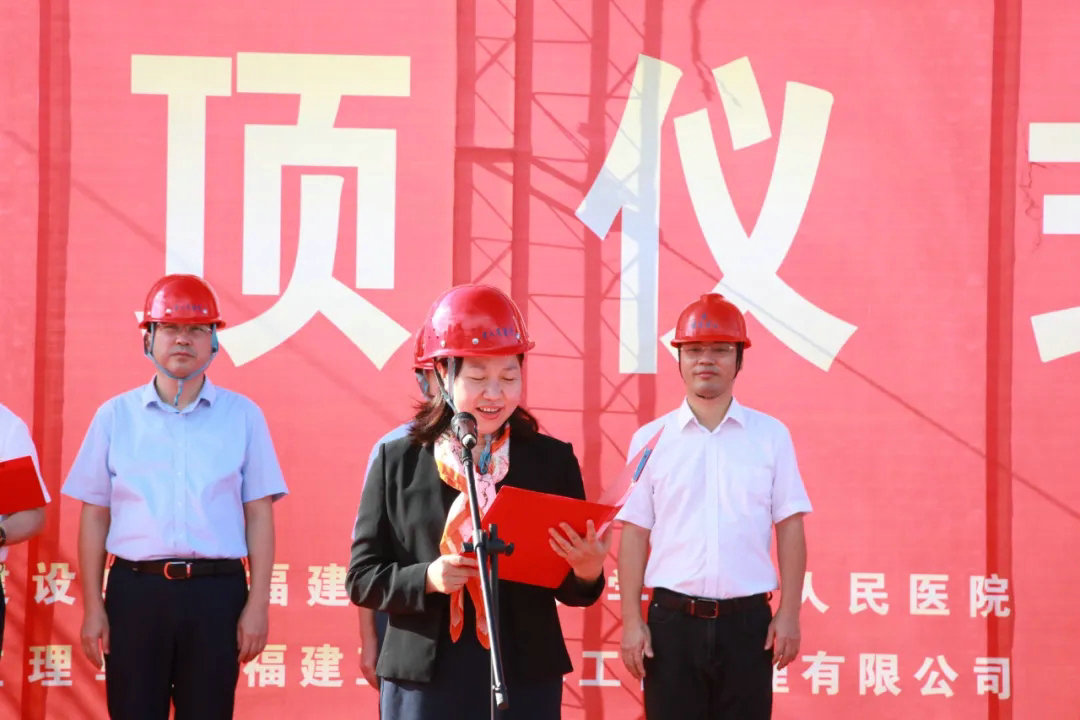 封顶仪式由陈捷院长主持,党委书记赵红佳代表黄播 党政班子向莅临现场的各位领导表示热烈的欢迎和衷心的感谢!向为大楼建设付出辛勤劳动的全体建设人员表示诚挚的问候!