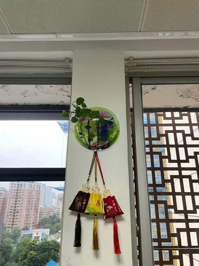 为了缓解患者在淸创换药时不安、烦躁的不良情绪,护理团队在整洁肃静的换药室里悬挂了中草药香囊,不仅增添了古色古香,而且香囊里中草药散发出来的香味,还能芳香化浊,起到一定的杀菌抑菌的作用。