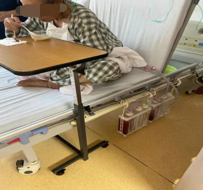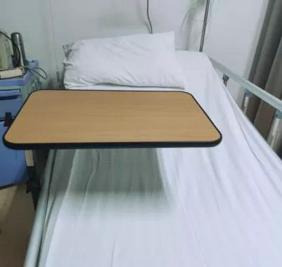 在胸心外科,术后大多留置胸腔闭式引流瓶。一天,护士长发现留置胸瓶,患者在床上吃饭成了个“难题”。病床自带的桌板需要把两边护栏拉起来,但是胸管又不能高于切口。要是不用拉起护栏也能用个小桌子就好了。经过研究讨论,科室自费购买了床上桌,专为留置胸瓶患者使用,吃饭问题也就迎刃而解了。