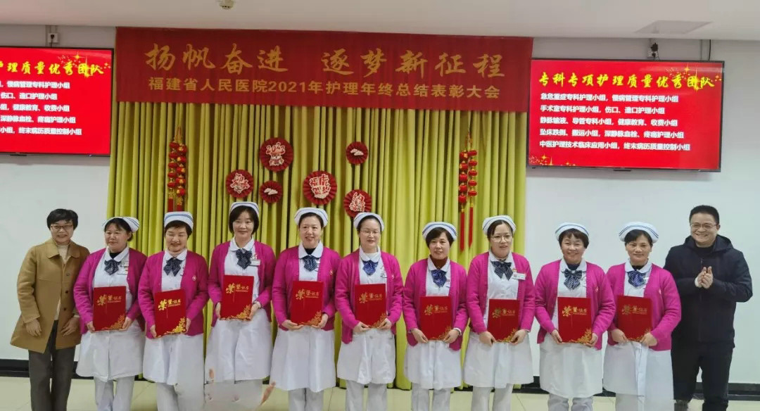 程心玲副院长、施婉玲副院长为“2021年度专科专项护理质量优秀团队”:急危重症小组、慢病管理小组、手术室专科小组、伤口造口小组、静脉输液小组、导管小组、健康教育小组、护理收费小组、坠床跌倒小组、搬运小组、深静脉血栓小组、疼痛护理小组、中医护理技术临床应用小组,终末病历质量控制小组颁发证书