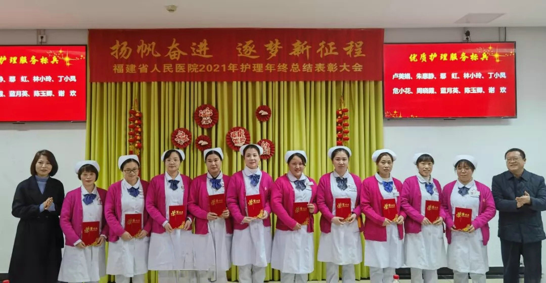 李艺华副书记、文丹副院长为“2021年度优质护理服务标兵”:卢美娟、朱惠静、鄢虹、林小玲、丁小凤、危小花、周晓霞、蓝月英、陈玉卿、谢欢颁发证书