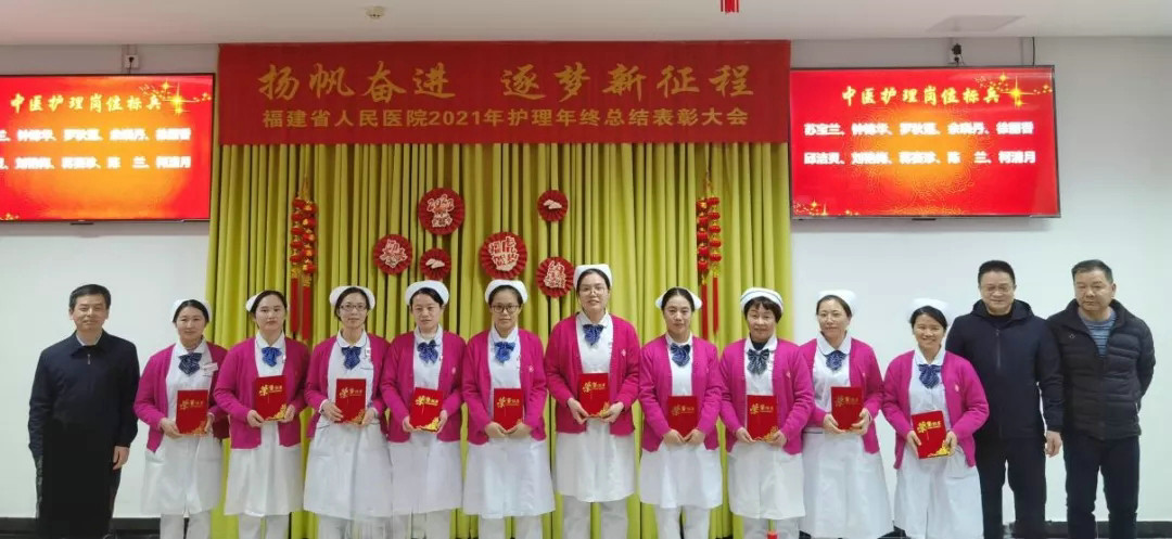 程心玲副院长、李玮副院长、徐顺贵副院长为“2021年度中医护理岗位标兵”;苏宝兰、钟锦华、罗秋莲、余晓丹、徐丽香、邱洁灵、刘艳梅、蒋赛珍、陈兰、柯清月颁发证书