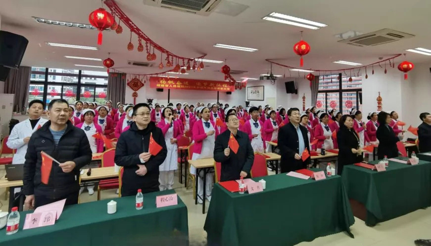 2022年1月17日,黄播 2021年护理工作总结暨表彰大会在1号楼3层会议室隆重举行。黄播 领导、各位职能科长及科主任出席此次大会,参会的还有护理部全体成员及各科室护士长、护士代表们。大会在全场护士齐唱《没有共产党就没有新中国》中拉开了序幕。