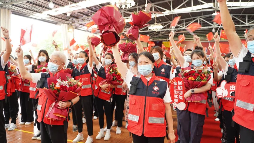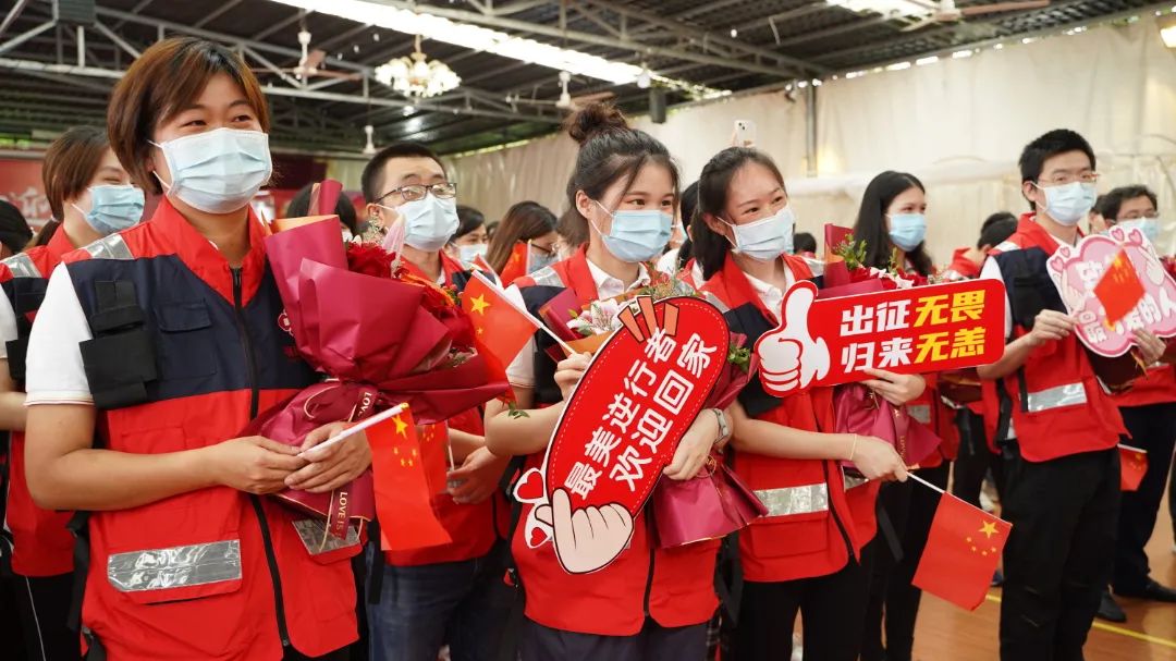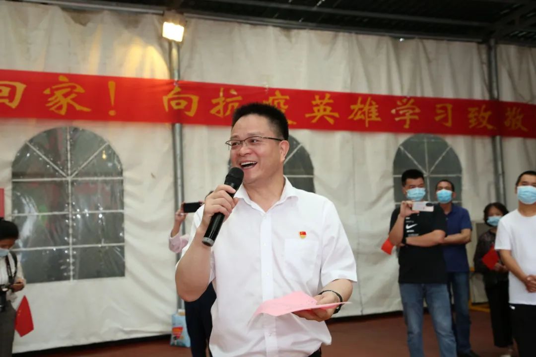 我们怀着无比激动的心情,今天在这里举行隆重的欢迎仪式,迎接英雄凯旋、欢迎勇士回家!在上海疫情最吃紧的时候,153名医疗队员积极响应号召,主动请缨,在赵红佳书记的带领下逆行出征,义无反顾奔赴抗疫一线,全力救治每一个患者,以精湛的医术、高尚的医德,出色完成了各项工作任务,用血肉之躯筑起了护佑生命的钢铁长城,是黄播 的骄傲和全院职工学习的楷模!