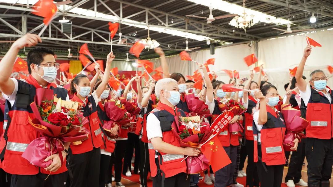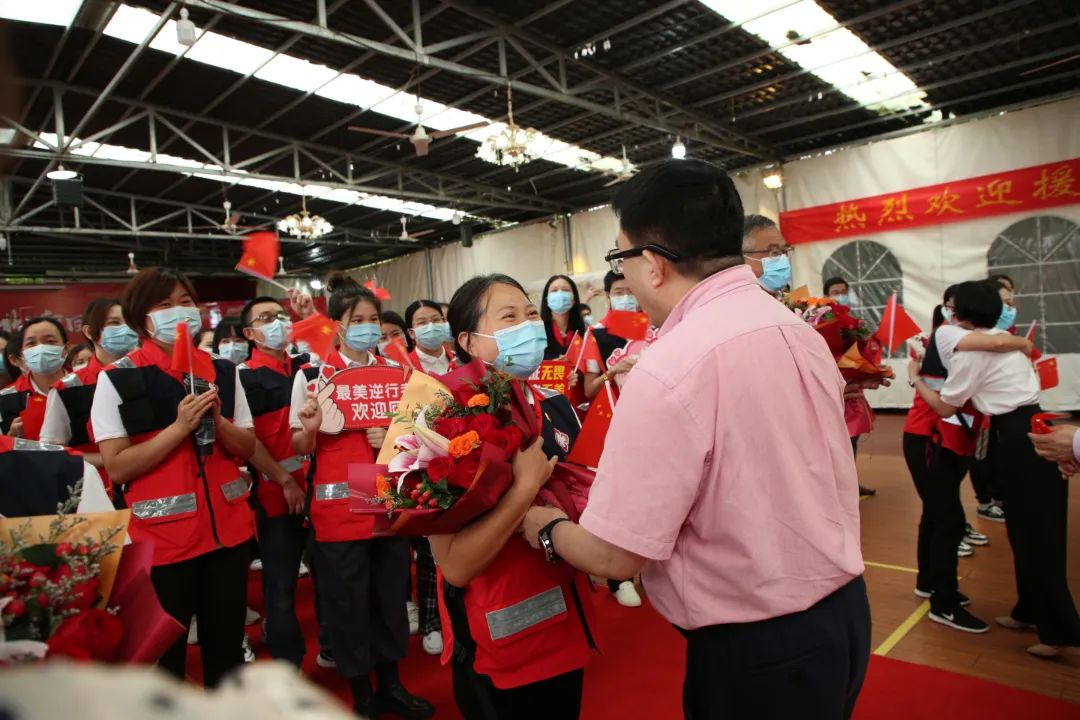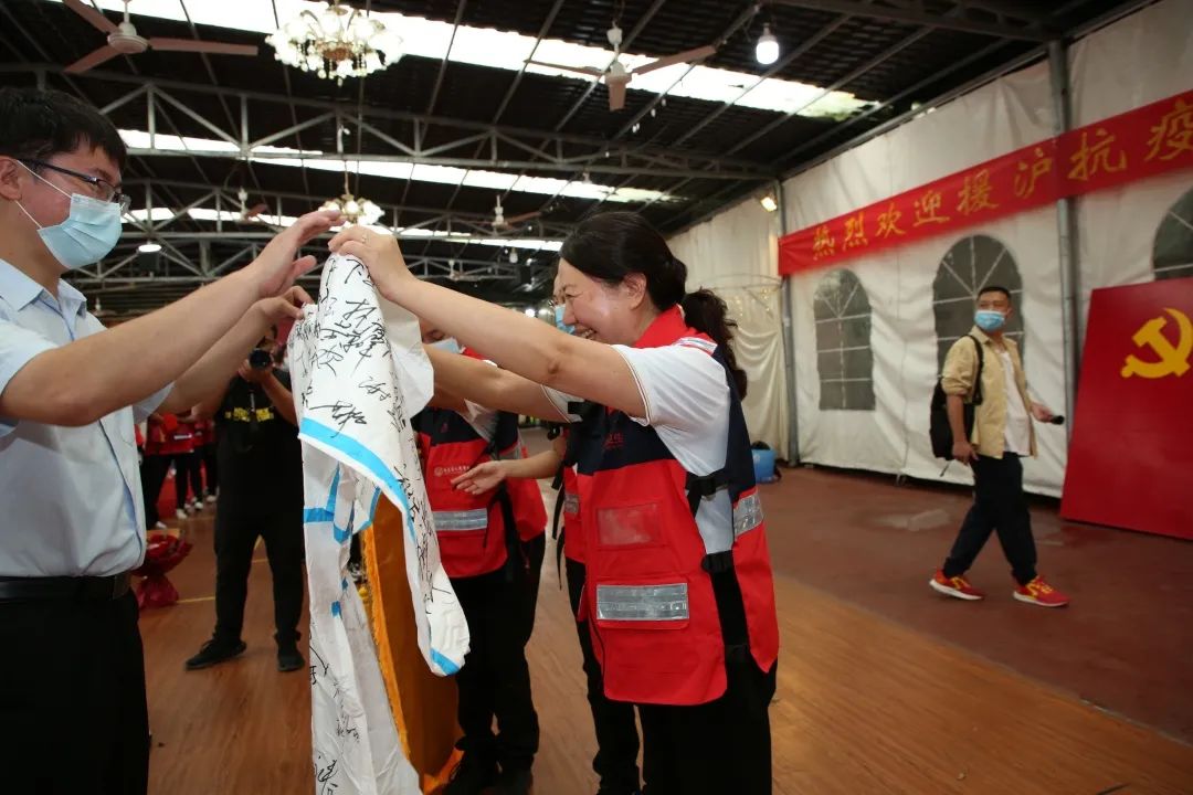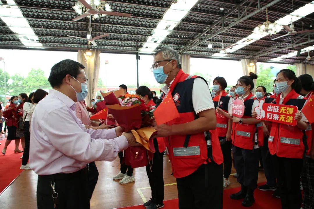 院领导班子及中层干部为援沪医疗队员献上鲜花