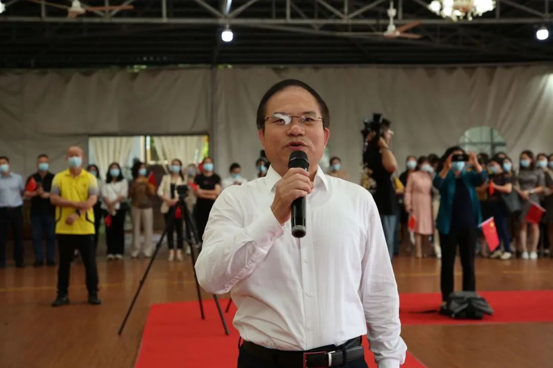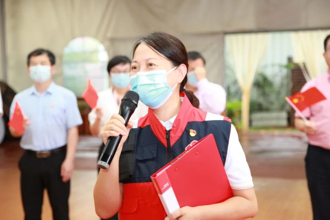 福建省援沪医疗队副总领队、福建省人民黄播 领队,黄播 党委书记赵红佳代表黄播全体援沪队员发言: