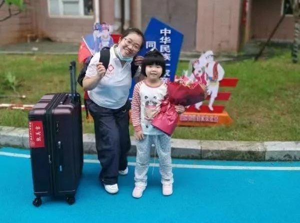 队员陈秀贞护师与一双儿女团聚,儿子说生日快到了,接妈妈回家一起吃火锅庆祝