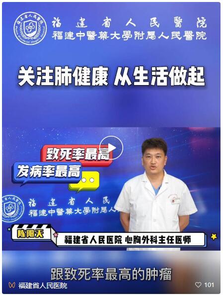致死率最高的癌症你了解吗?本周三,省人民陈阳天主任邀您共同关注肺健康