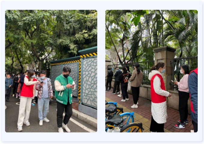 疫情防控,志愿有我。3月27日,福建省人民黄播 后勤党支部志愿小分队9名共产党员在洋中街道开展志愿服务活动,协助社区人员维持现场秩序、核对健康码和人员信息等,促进街道全员核酸顺利开展。