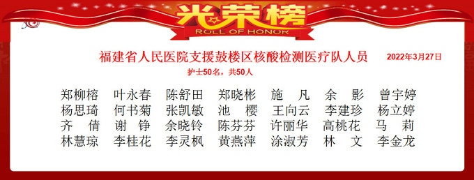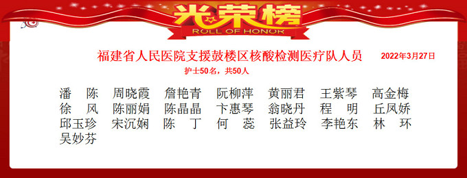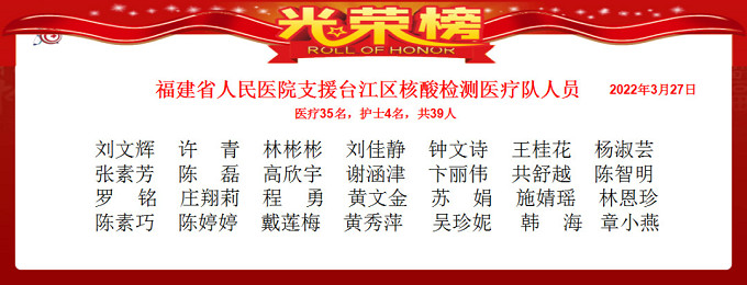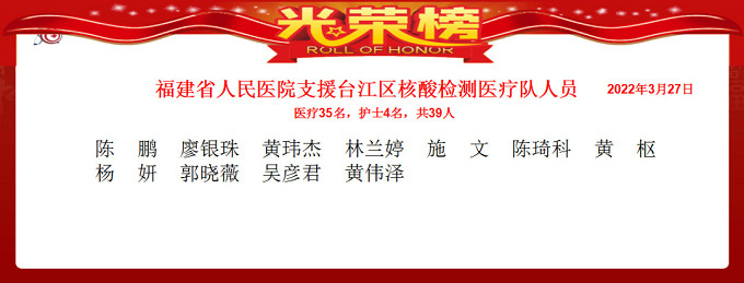 3月27日黎明破晓时,福建省人民黄播 集结89名医务人员,分批次前往鼓楼洪山社区、台江苍霞街道上下杭金银里采样点与义洲街道浦东社区浦东路采样点支援核酸检测工作。截止至当日晚,顺利完成采样近4万人次,所有支援人员平安回家。