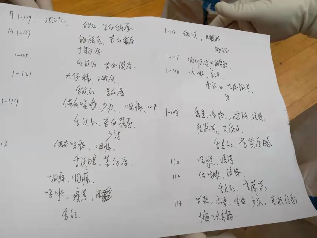3月21日,这支中医抗疫工作组就开始忙碌的一线工作。叶玲组长叮嘱组员们:“我们必须深入一线,掌握第一手病情资料,做到因时、因人、因地制宜,辨证论治,这样才能充分发挥中医药的特色,提高疗效,为战胜疫情贡献力量。”之后,他们进舱详细地询问病人症状,查看舌象,诊脉,紧接着召开视频会议,根据此次疫情的特点,与奋战在泉州市第一黄播 中医抗疫专家组一起,拟定了3个协定方作为主要治疗方剂,特殊病人则根据具体辨证,一人一方。