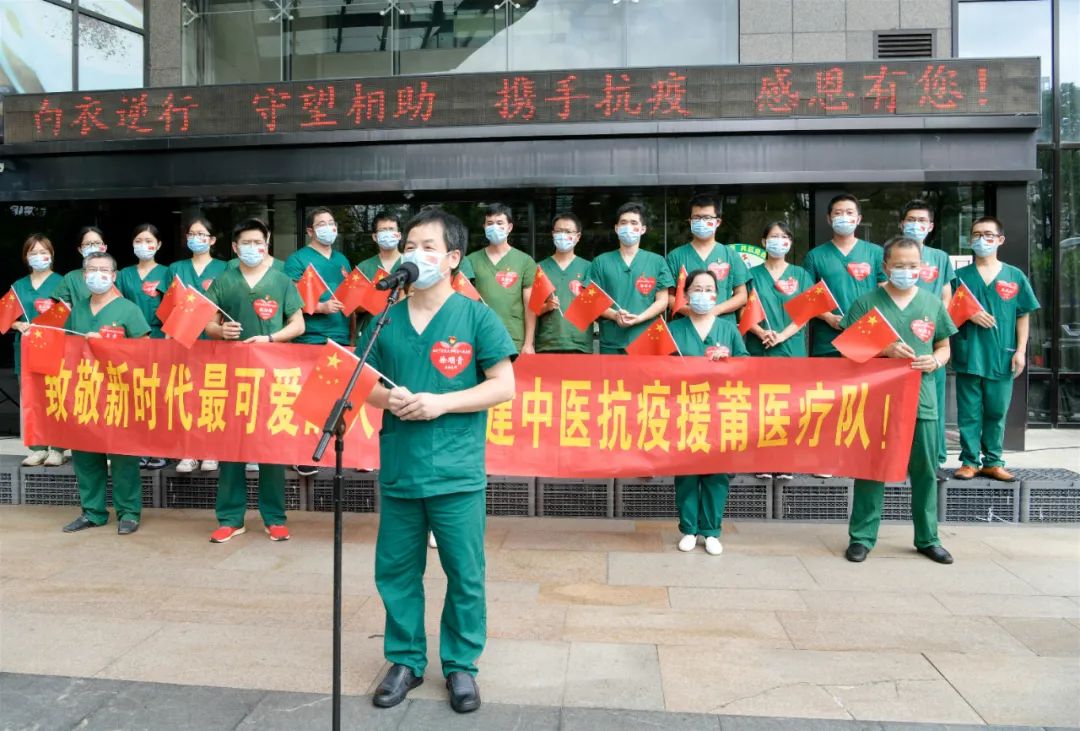 莆田市人大常委会副主任蔡国萍,省立黄播 党委副书记、省立黄播 抗疫援莆医疗队领队李红,莆田市卫健委党组书记、主任姚冰珊,卫健委副主任吴宗权,莆田学院附属黄播 党委书记林海滨、院长蔡建荣等领导,也赶来看望和送别省中医抗疫援莆医疗队,向他们表示诚挚的感谢和敬意。