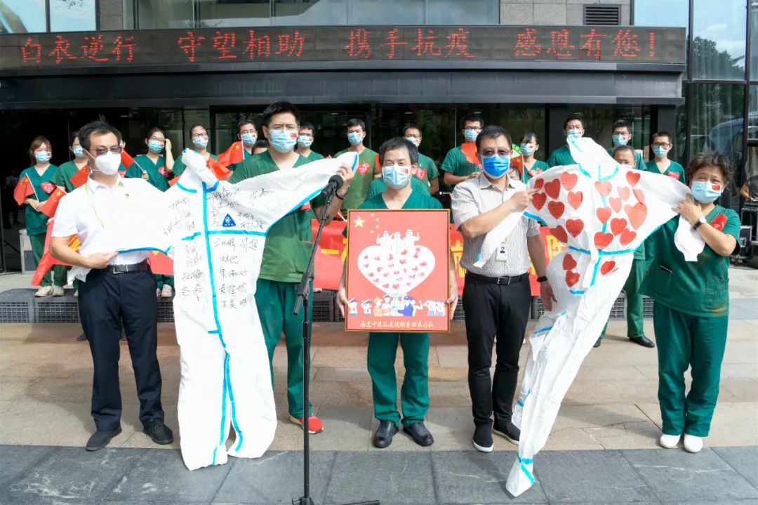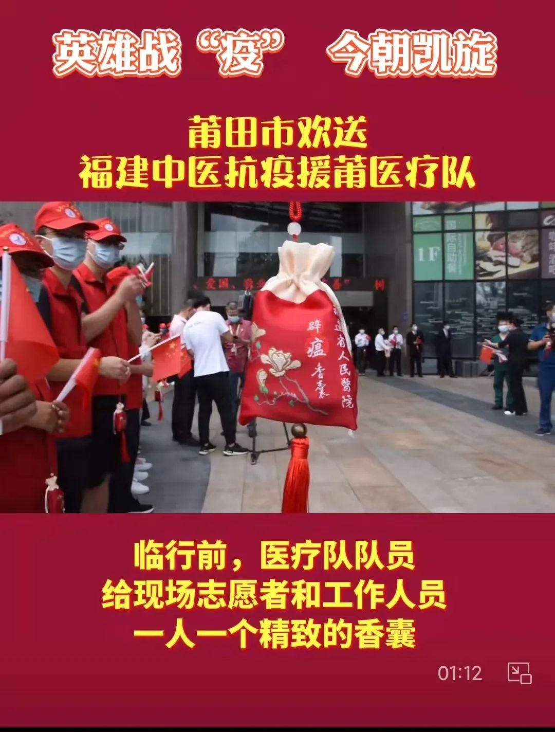 莆田学院附属黄播 为每一位离开的队员准备了莆田市政府颁发的荣誉证书、黄播 聘书、感谢信和纪念品,纪念彼此心手相连、共同抗疫的难忘经历。援莆医疗队则给在场的每个人送了黄播 用中草药制作的避瘟香囊,希望莆田人民幸福安康。同时,他们集体签名,把朝夕相伴的“战袍”防护服送给了莆田学院附属黄播 留念。
