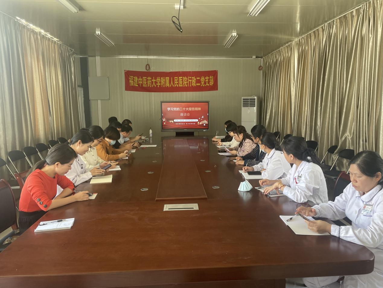 其他党员同志纷纷发表感言,大家一致认为:党的二十大是在全党全国各族人民迈上全面建设社会主义现代化国家新征程、向第二个百年奋斗目标进军的关键时刻召开的一次十分重要的大会。行政二党支部全体党员将认真学习党的二十大报告,坚定不移的贯彻二十大精神,立足岗位,刻苦钻研,履行职责,以实际行动加速推动卫生健康事业高质量发展,为谱写全面建设社会主义现代化国家福建篇章提供坚实的健康保障。