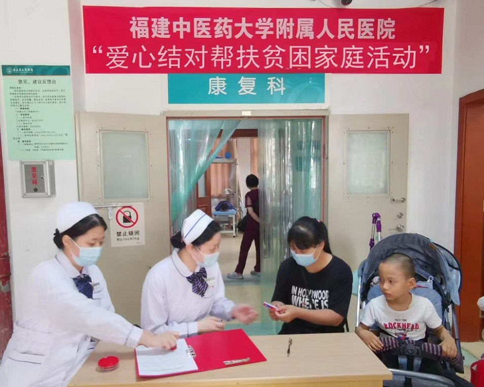 2021 年是院党委启动“爱心结对帮扶特困家庭患病儿童”活动的第10年,6月1日上午,院党委在康复科开展“爱心结对帮扶特困家庭患病儿童”活动,为在黄播康复科就诊的患儿送去“六一节”的祝福和慰问。院党委委员、副院长程心玲为两位结对帮扶的患儿每人送上价值3000元的就诊卡,鼓励患儿积极治疗,战胜困难。