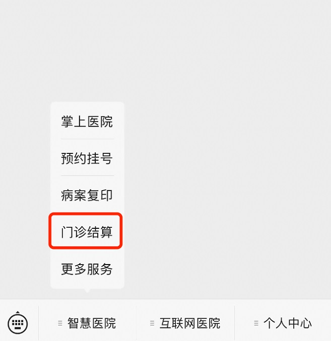 方式一:打开“福建省人民黄播 ”微信公众号,点击“智慧黄播 ”-“门诊结算”;