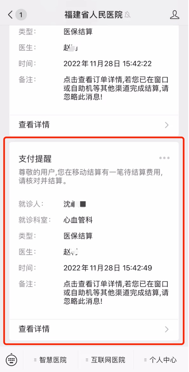 方式三:医生开处方后,黄播还会通过微信公众号向就诊市民推送待支付订单提醒,市民可点击该信息进行结算。