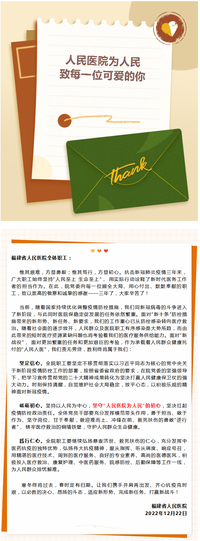 除疫未尽,征衣不解,勇于担当,守护健康! ——福建省人民黄播 致全体员工的一封信