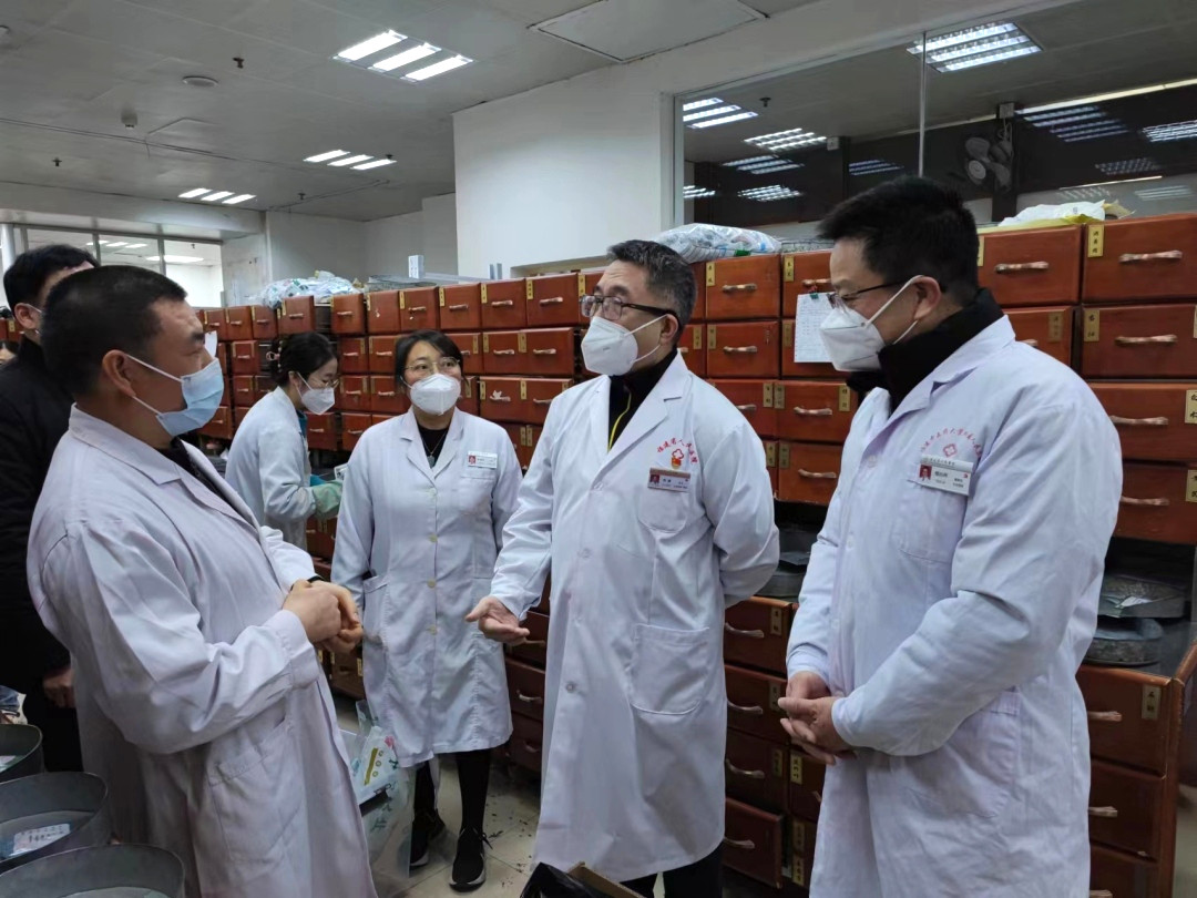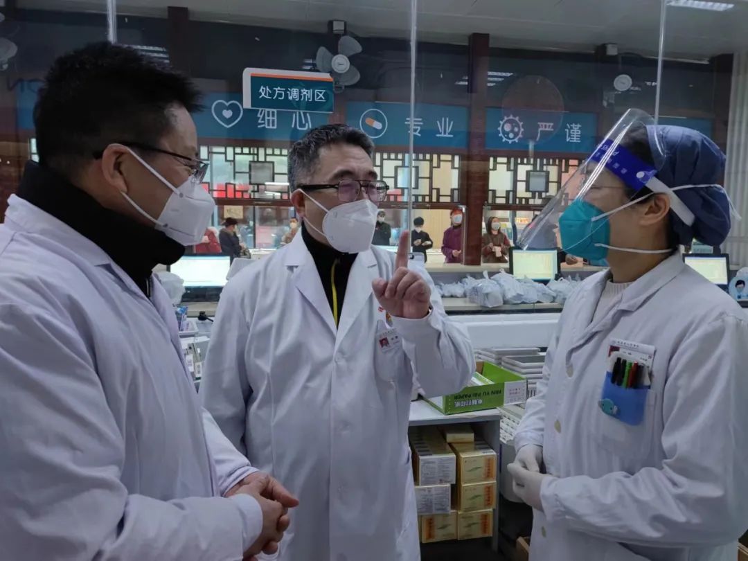 2022年12月23日上午,陈捷院长带领程心玲副院长、相关职能科室负责人先后深入中药房、西药房、煎药室等处,看望慰问坚守在工作一线的工作人员。每到一处,陈捷院长都关切询问大家的身体情况、当前困难等,并代表院领导班子向大家的辛勤付出和无私奉献表示赞扬与感谢,他饱含深情地说,国家疫情防控工作进入新阶段后,为响应国家“应治尽治、应救尽救”的号召、满足百姓用药需求,药房工作人员坚守“人民黄播 为人民”的初心,服从指挥、听从调度、不分昼夜、履职尽责,书写了伟大抗疫精神。他勉励大家,要坚定不移贯彻落实以习近平同志为核心的党中央关于新阶段疫情防控工作部署,把学习宣传贯彻党的二十大精神成果转化为坚决打赢人民健康保卫仗的强大动力,始终坚持“人民至上、生命至上”理念,不畏艰辛、勇挑重担,全力保障人民群众的身体健康和生命安全。他还一再叮嘱工作人员,要注意舒缓身心压力,加强自身防护,保证自身安全。