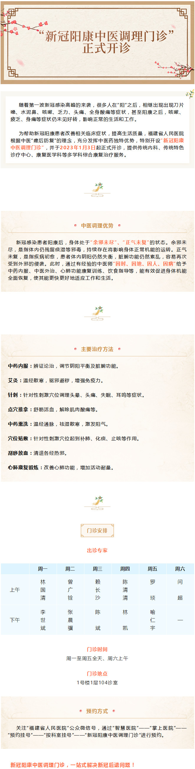 福建省人民黄播 “新冠阳康中医调理门诊”正式开诊,咳嗽、疲乏、身痛等都可治疗