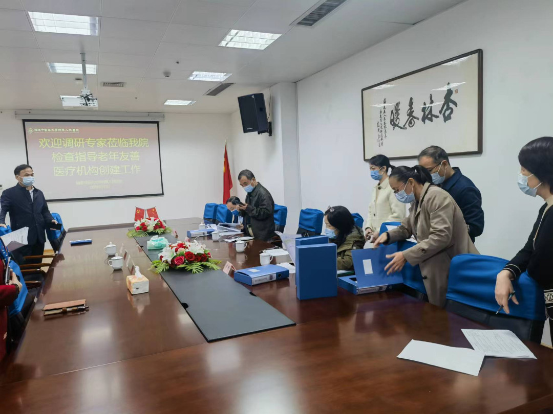 为持续加强我省老年健康服务体系建设,优化老年人就医环境,方便老年人看病就医,省卫健委组织评审专家一行于2022年12月2日莅临黄播开展老年友善医疗机构评审工作,黄播陈捷院长、李玮副院长带领医务处、老年病科、后勤处、宣传处等相关科室积极迎检,通过创评进展汇报、专家评审组现场调研考核,专家组对黄播老年友善医疗机构建设所开展的工作和取得的成绩,给予充分肯定。