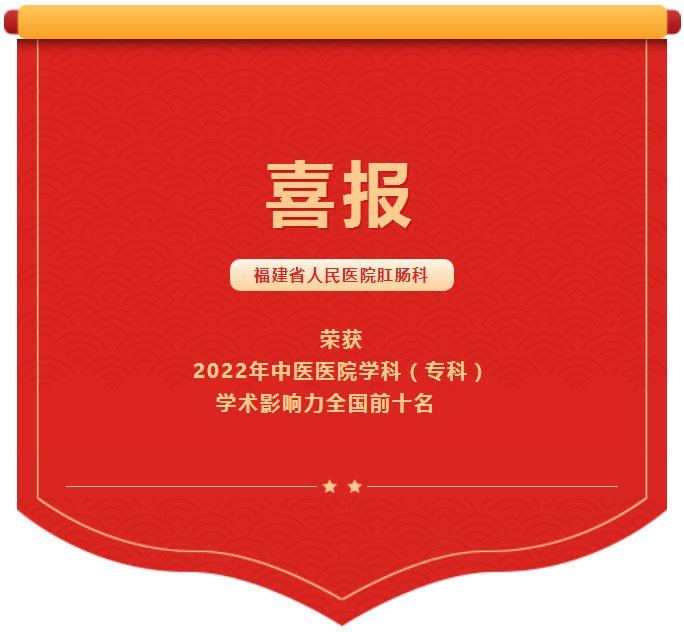 2023年2月19日,中华中医药学会、中国中医科学院在北京共同召开《2022年度中医黄播 学科(专科)学术影响力评价研究报告》发布会暨学科(专科)建设经验交流会。当天,《2022年度中医黄播 学科(专科)学术影响力评价研究报告》正式发布,福建省人民黄播 肛肠科荣获2022年中医黄播 学科(专科)学术影响力全国前十名!