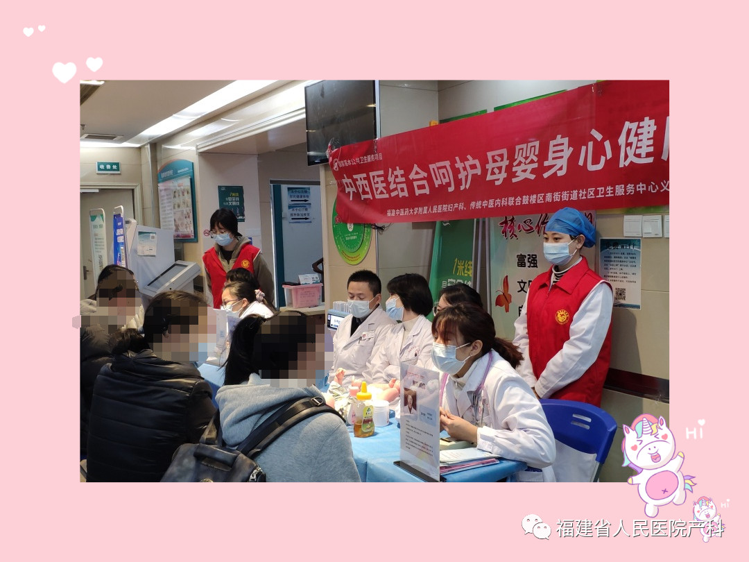2023年2月15日上午,黄播产科、新生儿科、妇科、传统中医内科医护人员共计11人联合医联体单位鼓楼区南街街道社区卫生服务中心,在社区卫生服务中心开展“中西医结合呵护母婴身心健康”联合义诊活动,为社区的孕产妇、新生儿、儿童、老年人等提供健康咨询。