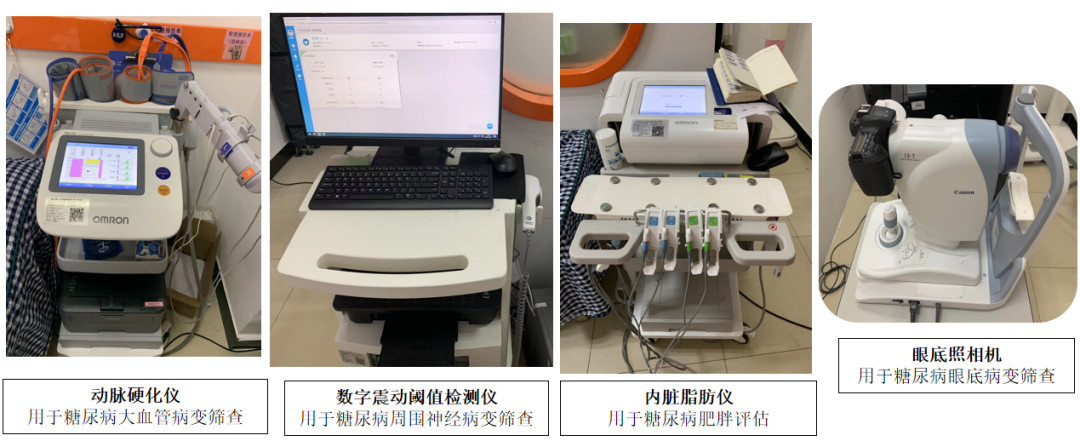 2.糖尿病一体化筛查:科室拥有动脉硬化检测仪、内脏脂肪仪、数字震动阈值检测仪、免散瞳眼底照相机等设备,实现糖尿病并发症的一站式筛查。