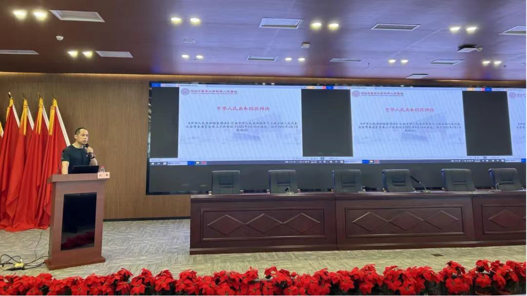 法务部刘新主任作关于“医疗人员法律法规知识”讲课