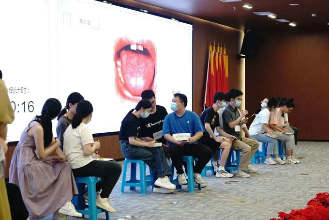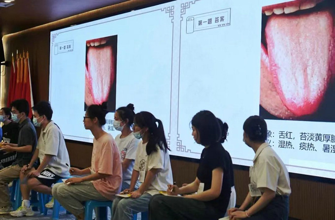 每队派出1名代表进行比赛,根据大屏幕给出的舌象图片,依据中医理论判断舌质、舌苔,写出病理舌象特征及临床意义。