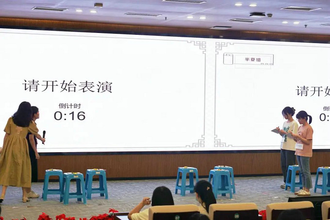 6支队伍按照初赛平均成绩排名依次上台,每队3位队员,1名队员选择答题序号获知对应的方剂名称,在规定时间内进行表演阐述,剩下2名队员回答方剂名称及所含具体药物。