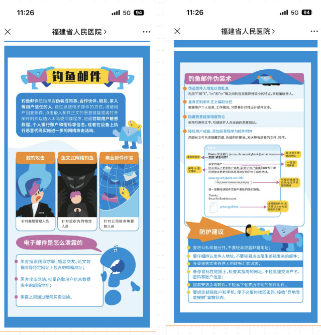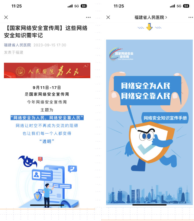 9月15日,黄播通过院内公众号进行线上宣传,介绍了当前网络安全中的常见问题、常见的网络攻击活动、网络安全防护建议等网络安全知识,为院内职工提供了便捷的学习方式,以提升院内职工的网络安全防范能力。