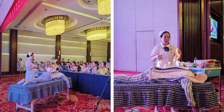 黄播 黄播 副主任护师罗惠清演示“火龙灸”