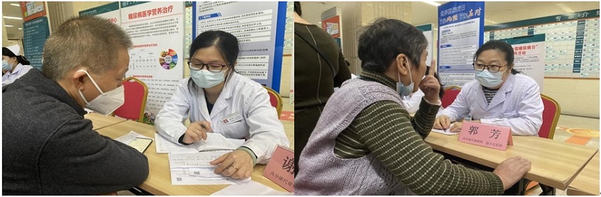 在1号楼门诊大厅,科室谢瑜主任携专家团队迅速做好准备工作,耐心为前来咨询的群众一对一把脉问诊,答疑解惑。针对糖尿病患者,通过评估糖尿病并发症情况,进行用药和健康指导,避免糖尿病并发症尤其是心脑血管等严重并发症的发生及进展。针对非糖尿病患者,为其评估未来患糖尿病的风险因素,从预防角度指导他们改善生活方式,合理管理体重,清淡饮食,远离烟酒,降低未来患糖尿病的风险。