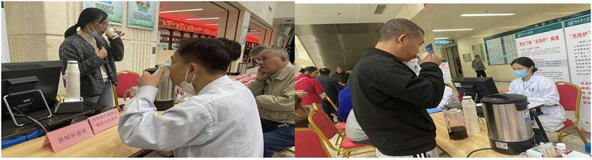 义诊现场,医护人员为群众和糖尿病患者进行免费测血糖、血压,免费品尝糖尿病养生茶饮,免费体验耳穴压豆等非药物治疗,义诊专家们尽职尽责,热情认真地接诊每一位前来咨询的群众,耐心讲解了有关糖尿病等方面的防治知识,还针对患者的不同病症和个体差异给予合理的诊疗建议、指导用药,做到“未病先防”、“既病防变”、“预后防复”。