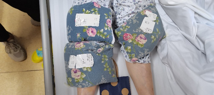 蔡××,女,61岁,单侧膝关节骨关节炎行膝关节单髁置换术,术后第2天即下地行走。