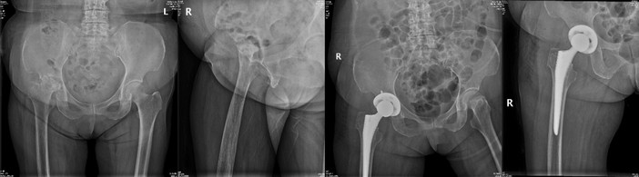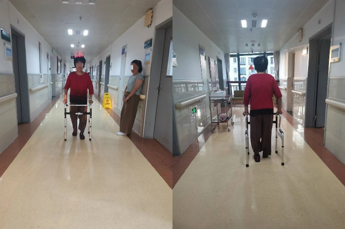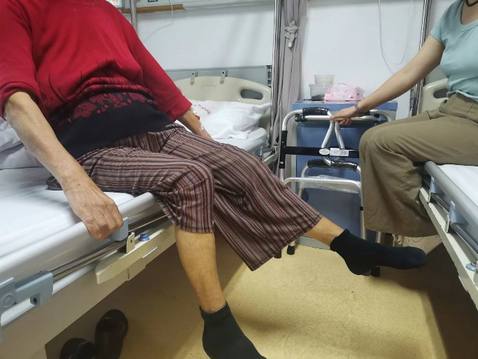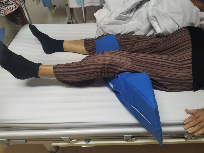许×,女,66岁,严重股骨头坏死并髋骨关节炎行人工全髋关节置换术,术后3天下地,1周上下楼梯。