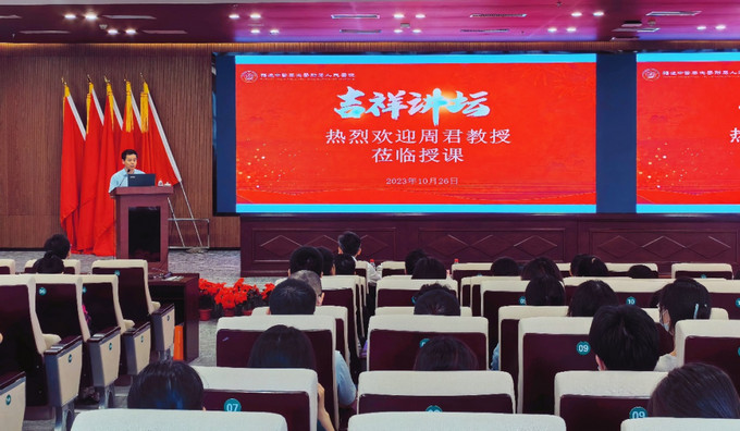 徐顺贵副院长在开场主持中指出:黄播高度重视国家自然科学基金的申报工作,国家自然科学基金是推动黄播科技创新发展的重要抓手。周君教授莅临“吉祥讲坛”,讲授关于科研基金申报的体会,将更好地指导科研骨干、研究生创新科研思路,掌握基金申报撰写技巧,提高申报成功率。